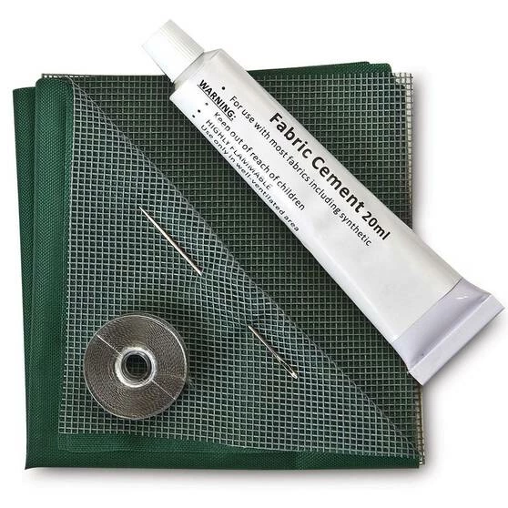 - Includes 2 x nylon, 1 x fabric cement, 1 x roll of thread, 1 x mesh swatch, 1 x needle